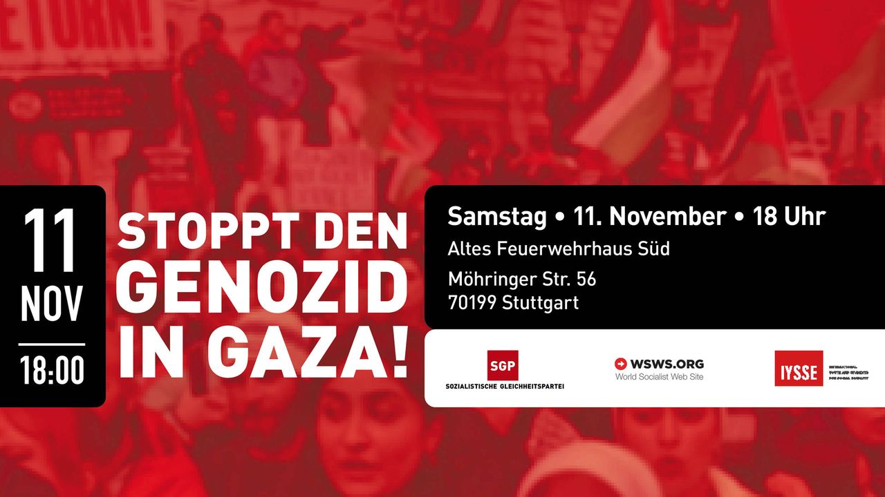 Die Sozialistische Gleichheitspartei tritt der Kriegspropaganda und den Angriffen auf Anti-Kriegs-Proteste entgegen. Der Völkermord in Gaza und der Stellvertreterkrieg der Nato gegen Russland sind Teil eines globalen Konflikts um die Neuaufteilung der Welt.